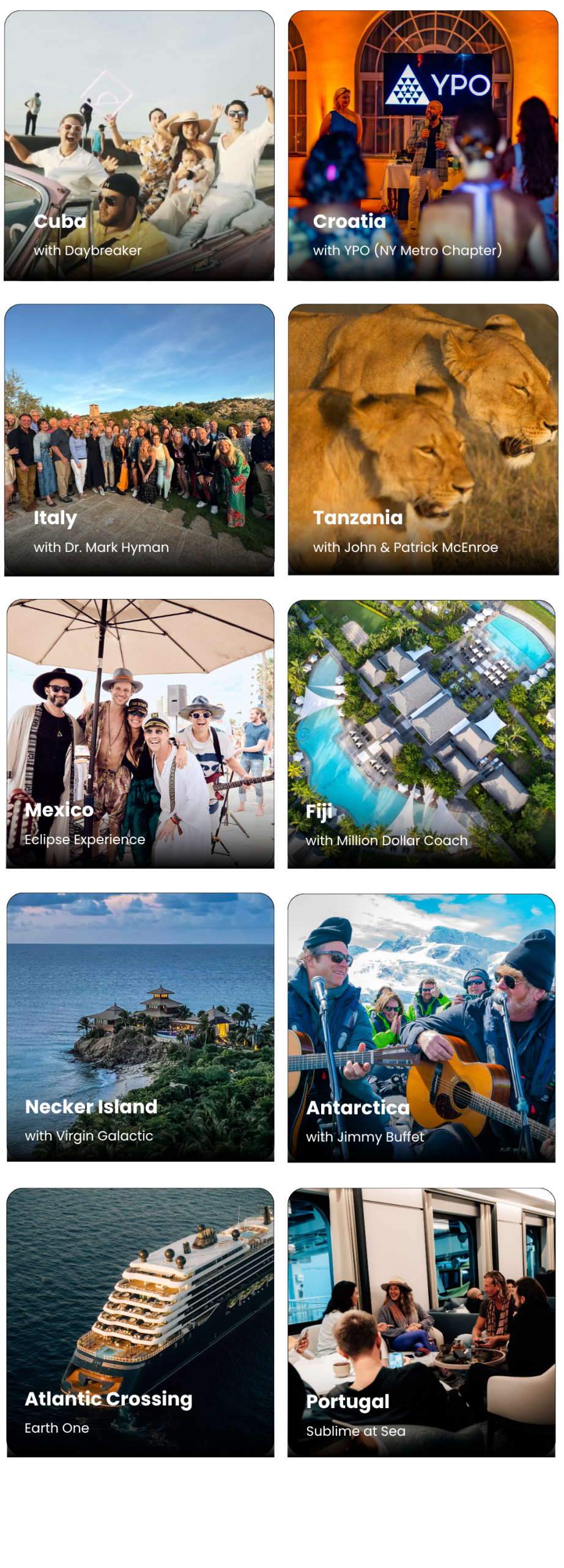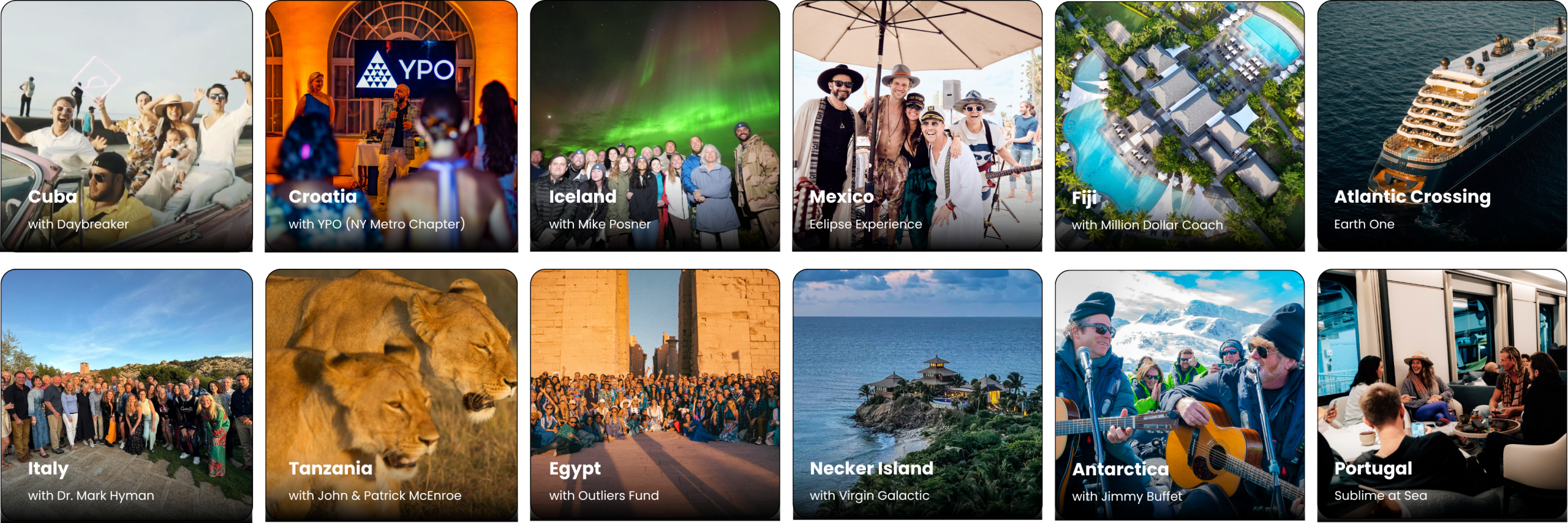 With over 500 proven travel experiences, our offerings span once-in-a-lifetime journeys, educational programs, mission-driven expeditions, creative brainstorming retreats, and wellness getaways.