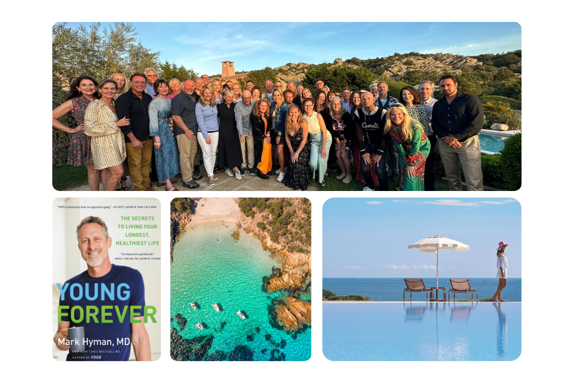 In April 2023, we embarked on our Young Forever Longevity Retreat with Dr. Mark Hyman on the northern coast of Sardinia, one of the world’s five Blue Zones. Each day was a powerful blend of inspiring lectures on longevity, daily spa treatments, and rejuvenating wellness practices. We nourished ourselves with fresh, organic, locally sourced meals and explored how to weave these principles into our everyday lives. Surrounded by the natural beauty and vitality of Sardinia, this retreat offered us the ultimate opportunity to reset, recharge, and embrace practices for living younger, longer.