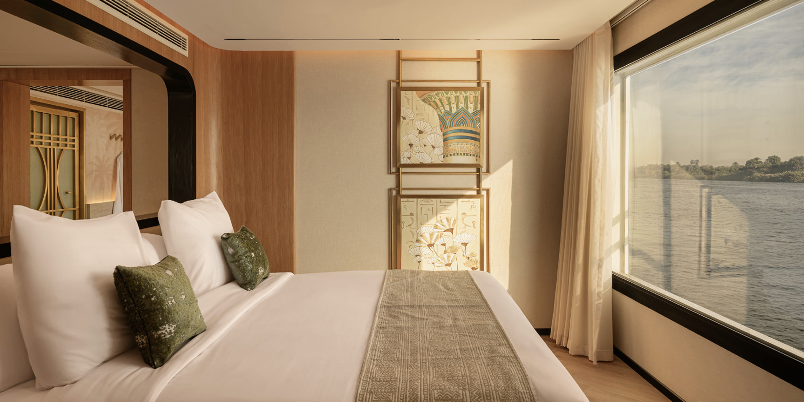 Welcome aboard the newest luxury gem of the Nile River, the all-suite Fayan Suites. The base level cabin is a Junior Suite complete with sitting room and even extra bed for a third person should you wish to add them. Enjoy floor to ceiling glass windows, an exceptional common area for our Lifebook content sessions, private chef and gourmet meals, gym, spa, pool, and jacuzzi, so that you can relax in Egyptian opulence on our life-changing journey.